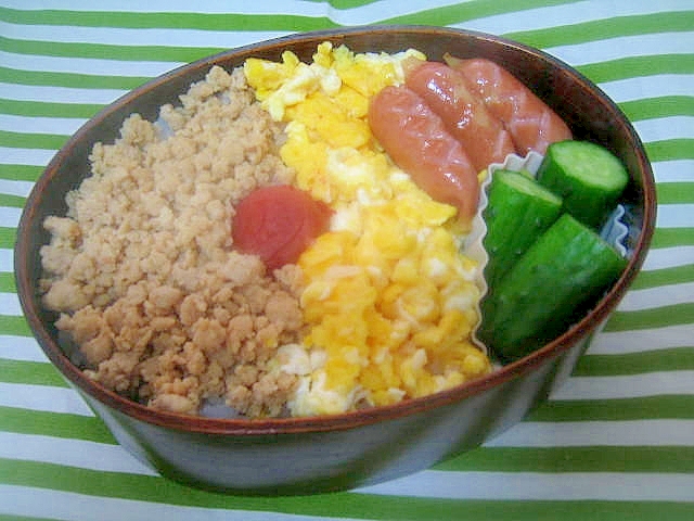 15 04 07 お弁当 3色そぼろ丼 珍しく鶏そぼろじゃなくて牛そぼろ 弁当 Obento Bento